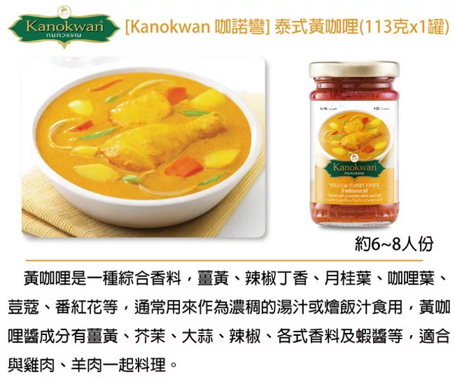 《Kanokwan咖努彎》泰式黃咖哩醬(113g-瓶) 評價